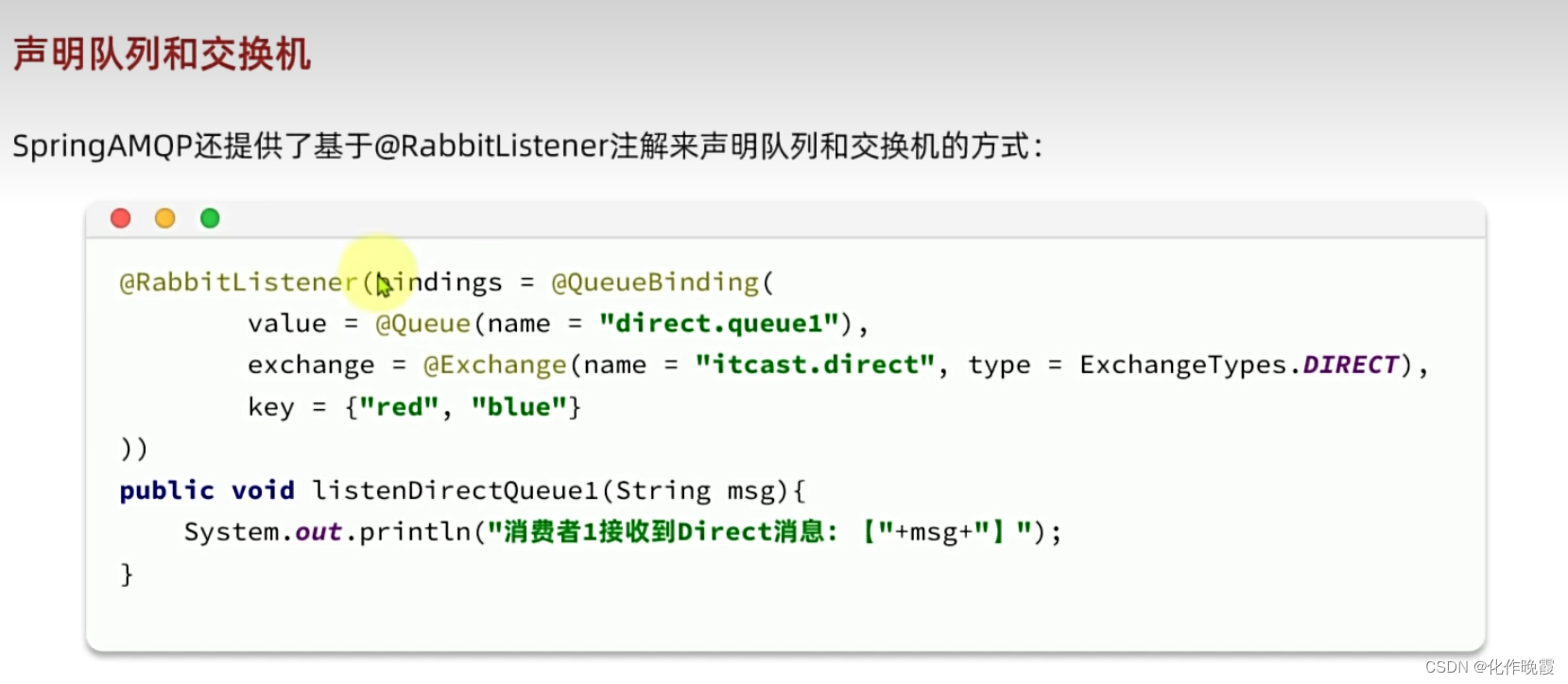 @RabbitListener(queues = "direct.queue1")