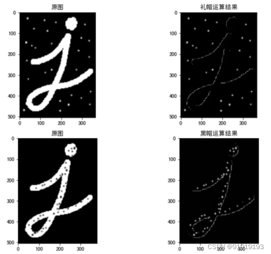 cvOpen = cv.morphologyEx(img1,cv.MORPH_TOPHAT,kernel) # 礼帽运算