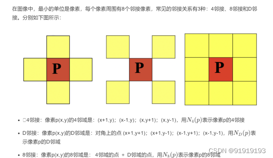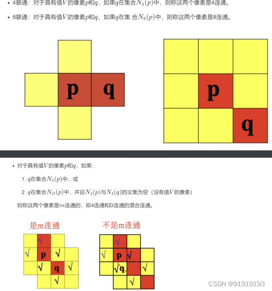 根据连通性的定义,有4联通、8联通和m联通三种。