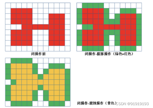 闭运算与开运算相反,是先膨胀后腐蚀,作用是消除/“闭合”物体里面的孔洞,特点:可以填充闭合区域。