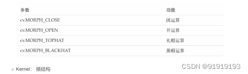 - op: 处理方式:若进行开运算,则设为cv.MORPH_OPEN,若进行闭运算,则设为cv.MORPH_CLOSE
