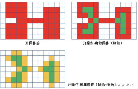 开运算是先腐蚀后膨胀,其作用是:分离物体,消除小区域。特点:消除噪点,去除小的干扰块,而不影响原来的图像。