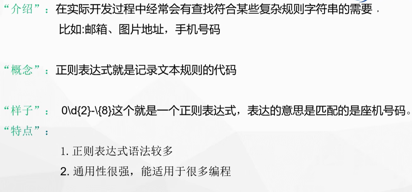 作用:可以去检查一个字符串是否与某种模式匹配,是很强大的字符串处理工具,类似于格式化输出(作为一个模板和要匹配的字符串去进行匹配,筛选出符合条件的部分)