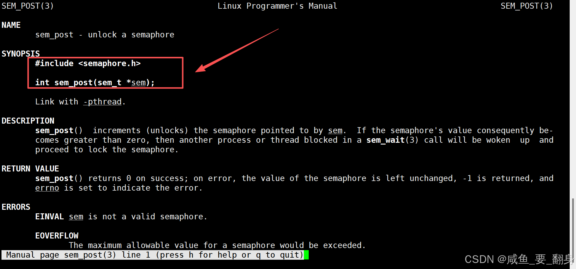 4、发布信号量(释放信号量,也就是V操作) (sem_post)