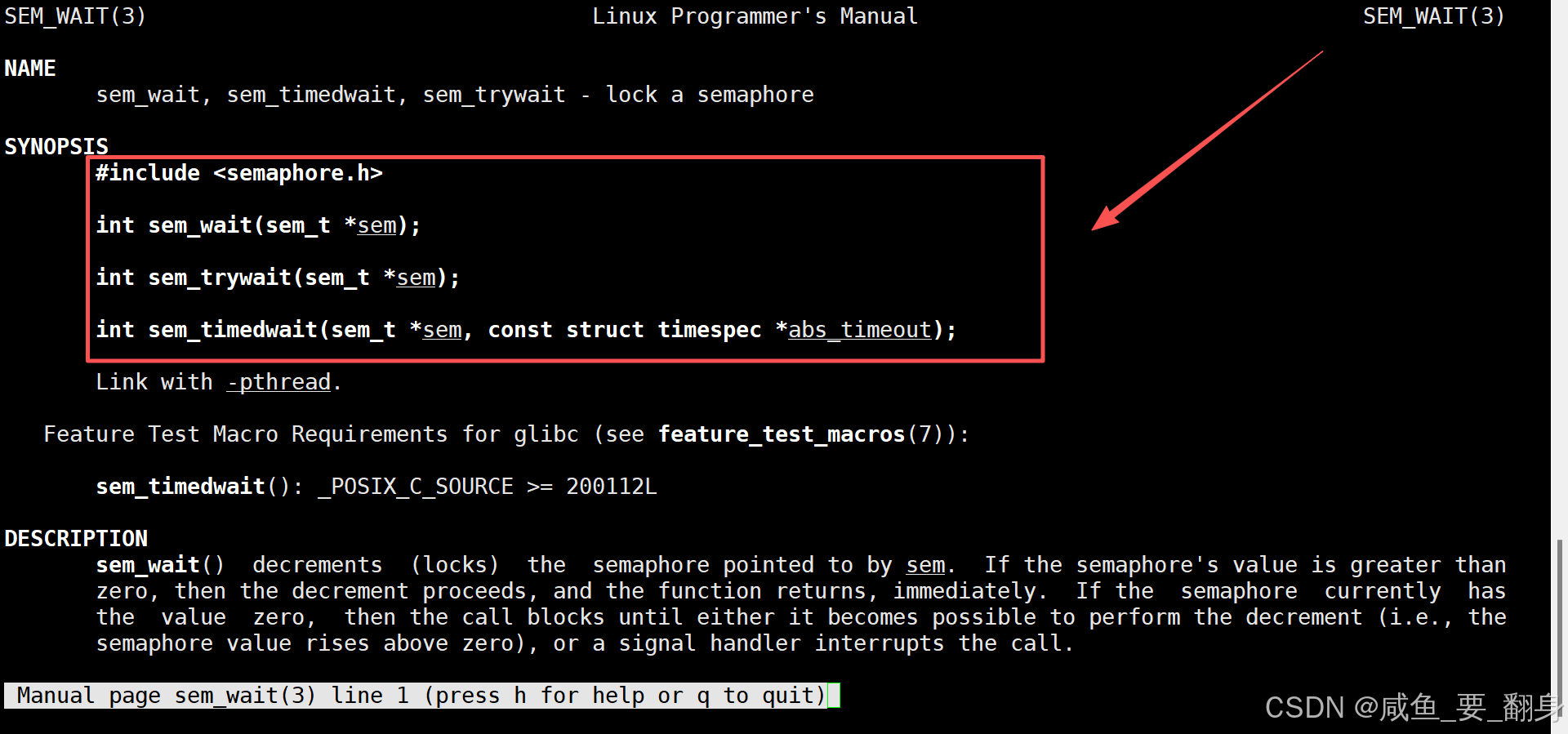 3、等待信号量(申请信号量,也就是P操作) (sem_wait)