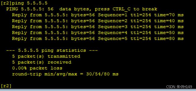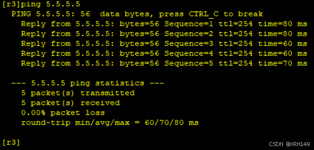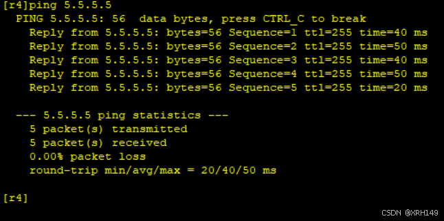 3、r1-r4上不能直接编写到达5.5.5.5/24的静态路由,但仍可以访问