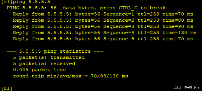 三、配置缺省路由(实现访问5.5.5.5)