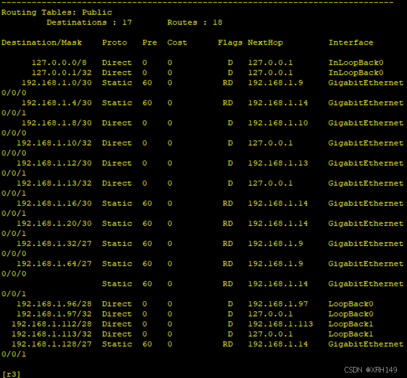 二、配置静态路由(实现R1-R4互联)