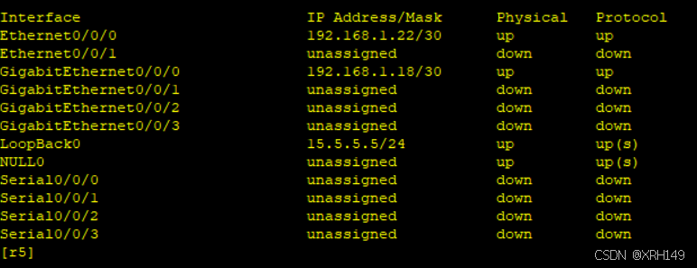 1、除r5的环回地址固定外,整个其他所有网段基于192.168.1.0/24进行合理的IP地址划分