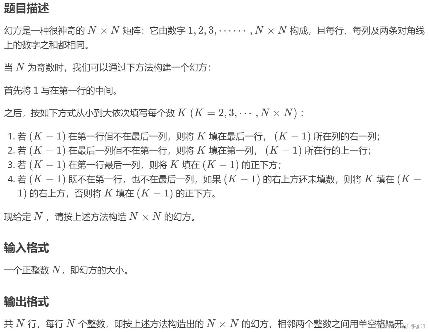 可以确定第一个数字1所填的位置,将1填入以后可以根据1的位置推出2的位置,由2的位置推出3的位置,依此类推,可以推到n*n的位置;当所填的数字超过n*n的时候可以结束循环。