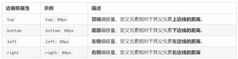 边偏移决定最终位置,有top、bottom、left、right4个属性。(注意:如果一个盒子既有left属性也有right属性,则默认会执行left属性;同理,top和bottom会执行top属性)