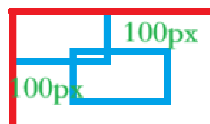 如果下面的盒子是相对定位,上100px,左100px,则: