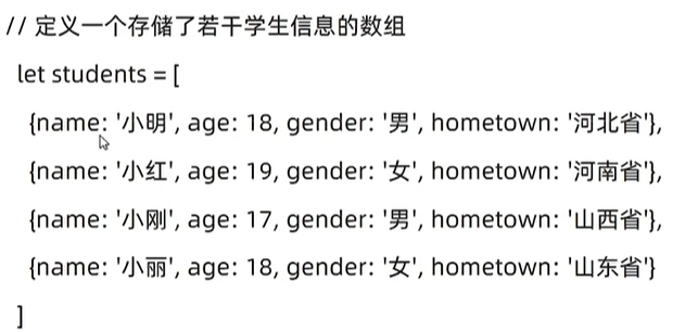{ name: '小刚', age: 17, gender: '男', hometown: '山西省' },