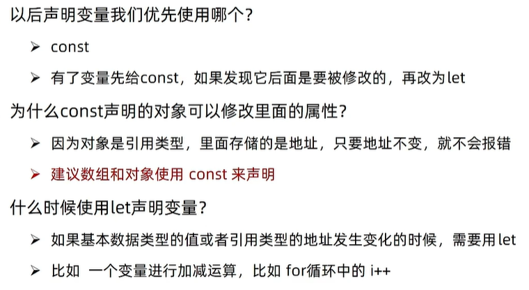 const实际上保证的,并不是变量的值不得改动,而是变量指向的那个内存地址所保存的数据不得改动。对于简单类型的数据(数值、字符串、布尔值),值就保存在变量指向的那个内存地址,因此等同于常量。但对于复合类型的数据(主要是对象和数组),变量指向的内存地址,保存的只是一个指向实际数据的指针,const只能保证这个指针是固定的(即总是指向另一个固定的地址),至于它指向的数据结构是不是可变的,就完全不能控制了。