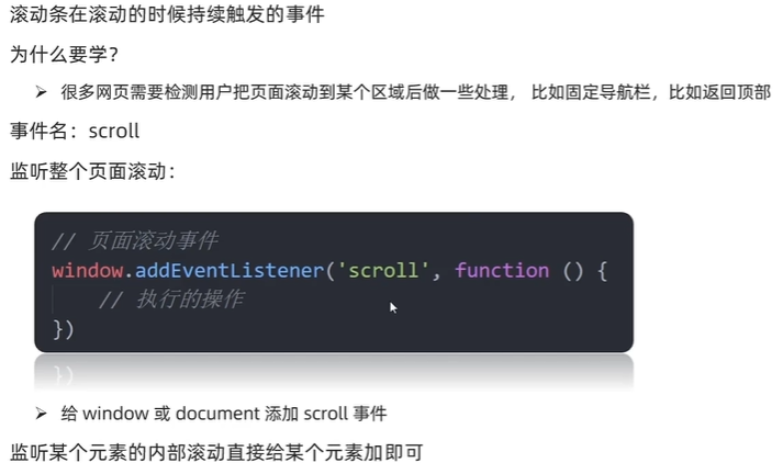 // 3. 页面滚动,可以根据大盒子选 小盒子 添加 active 类