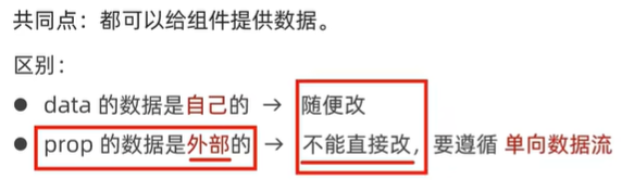 自己的数据在data中,可以改;props中的数据是父组件的,不能改。