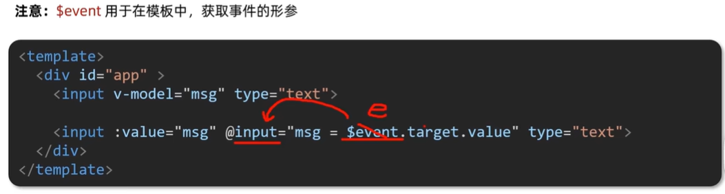 原理:一种语法的简写,eg:应用在输入框上,就是value属性和input事件的合写;如果应用在复选框上,就是checked属性和change事件的合写。