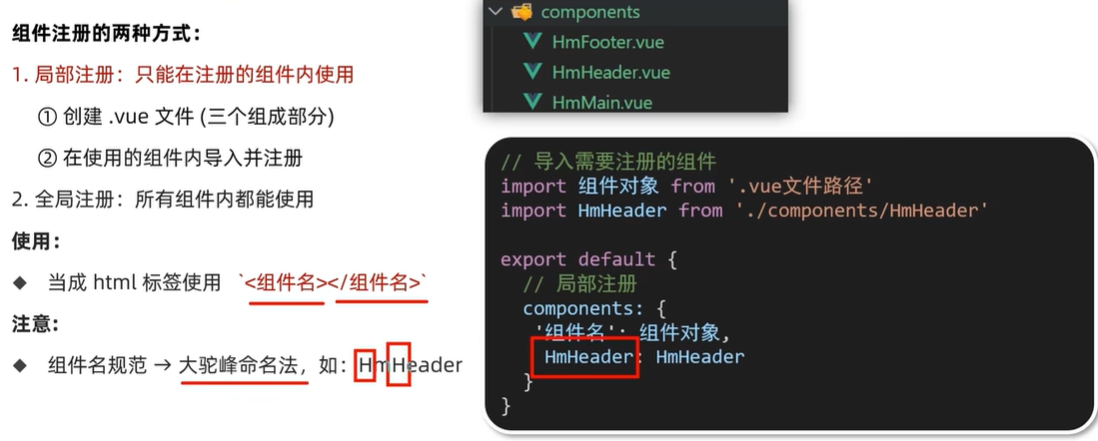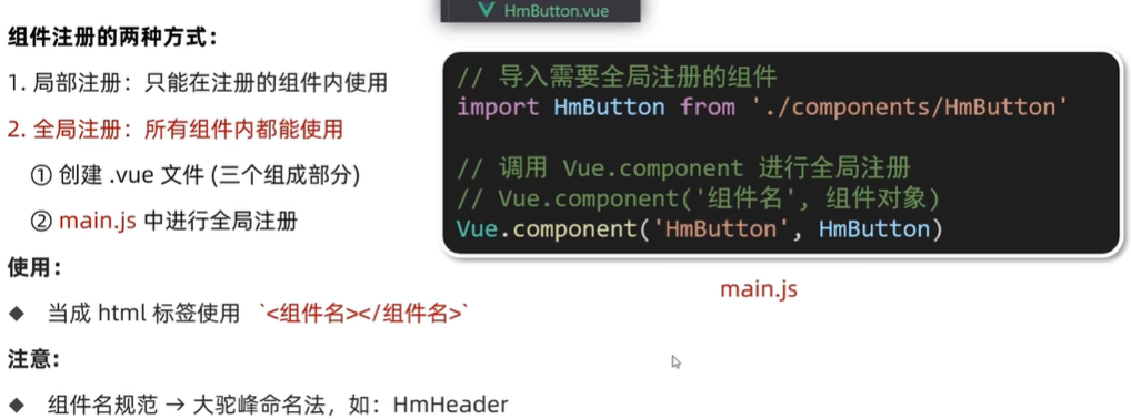 // 进行全局注册 Vue.component(组件名,组件对象)