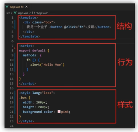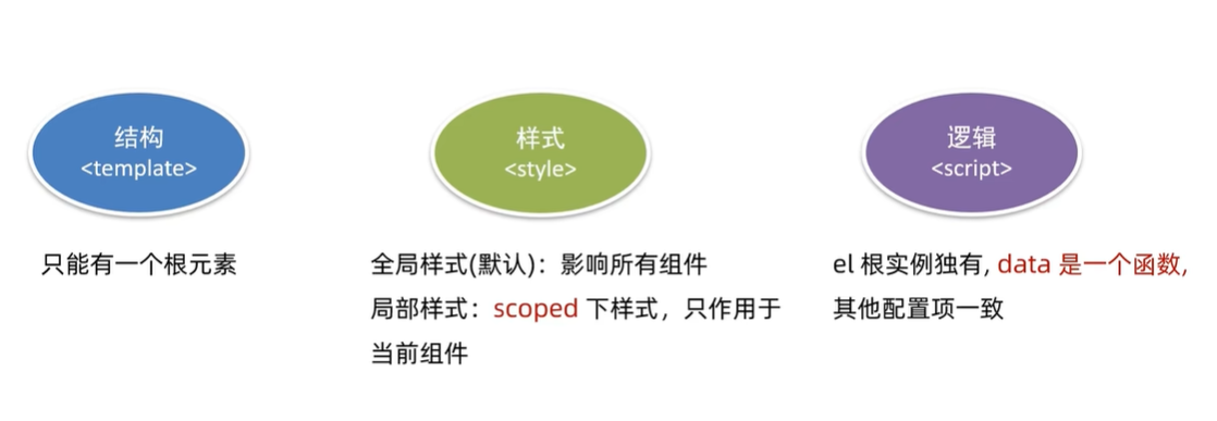 template:结构(有且只能一个根元素,Vue2是这样的,Vue3已经没有这个特性了)