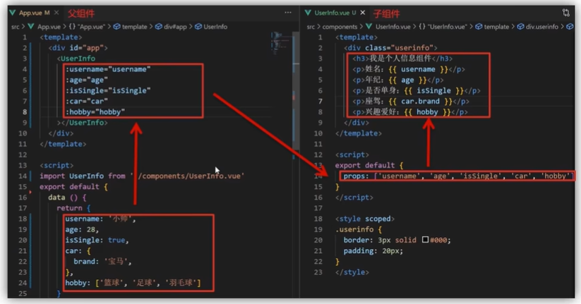 渲染数据注意:提供数据是提供在公共的父组件 App.vue中;然后通过父传子,使用 v-for 渲染。