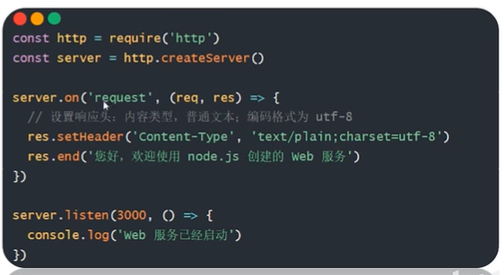 res.end('欢迎使用 Node.js 和 http 模块创建的 Web 服务')