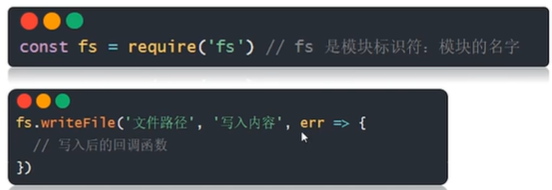语法:1. 加载fs模块对象 2. 写入文件内容 3. 读取文件内容