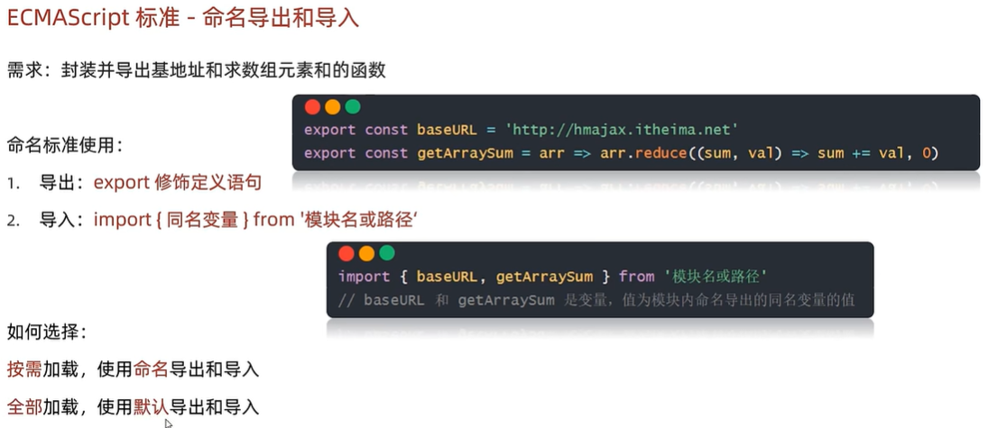 使用:需要标准语法导出和导入进行使用