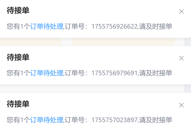 用户下单并且支付成功后,需要第一时间通知外卖商家。通知的形式有如下两种: