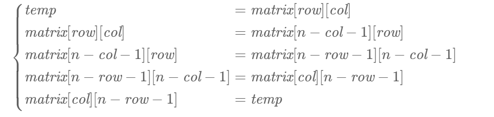 matrix[n − col − 1][row] = matrix[n − row − 1][n − col − 1];