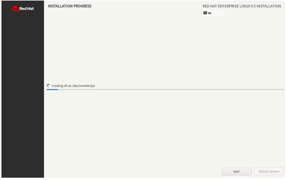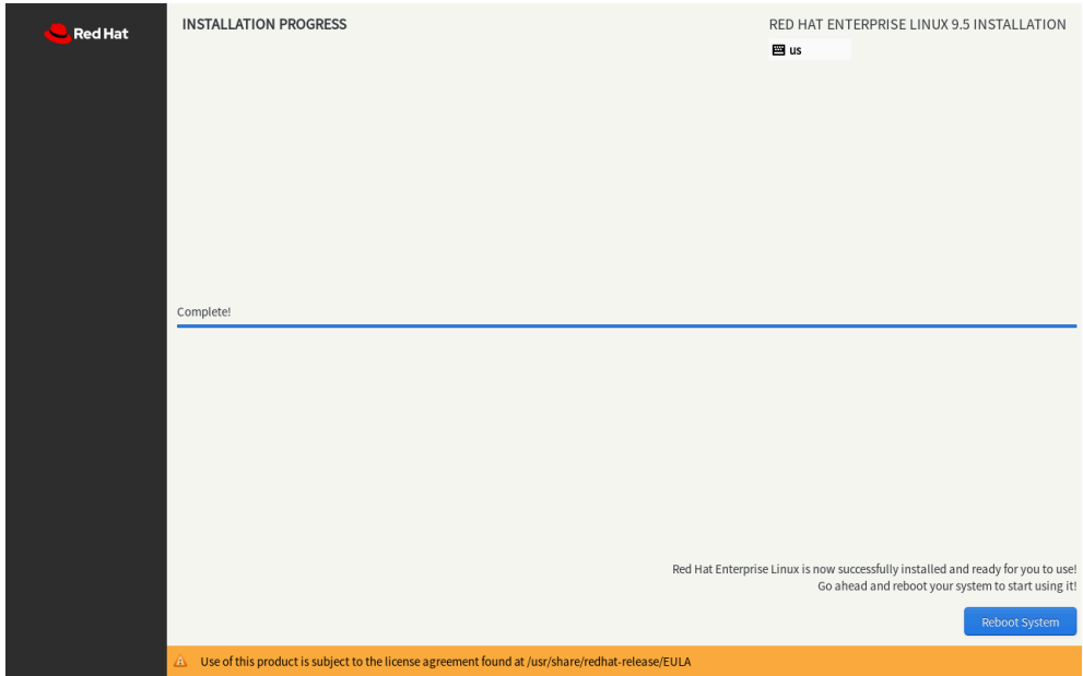 此项安装需要等待几分钟,安装完成后点击“Reboot System”按钮重新启动系统。至此,Redhat 9.5 系统安装完成。