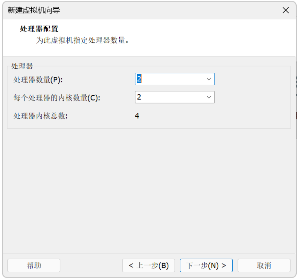 可根据自己的电脑进行配置,指定好处理器后点击下一步: