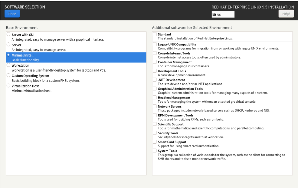 选择“Minimal Install”最小化安装,选择好后,点击“Done”完成配置,并回到如下所示