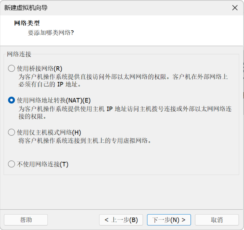 网络类型选择“使用网络地址转换(NAT)”,点击下一步: