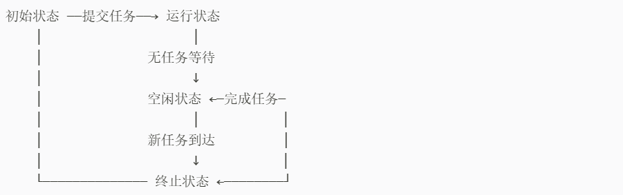 线程池的工作流程可以用以下状态机来描述: