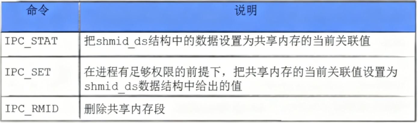 int shmctl(int shmid, int cmd, struct shmid_ds *buf);