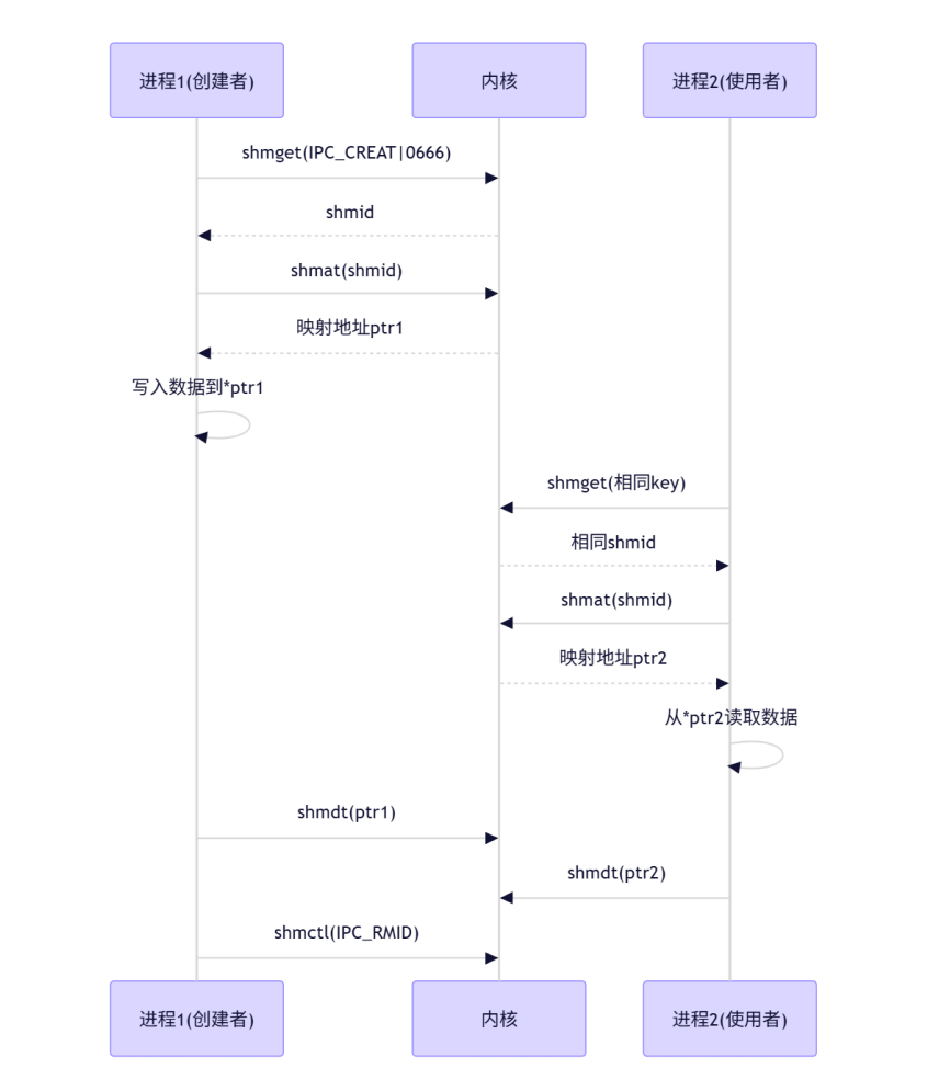 返回一个指向共享内存的指针 ptr1,进程1可通过 ptr1 直接读写数据