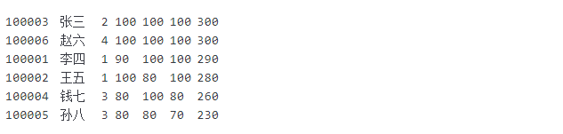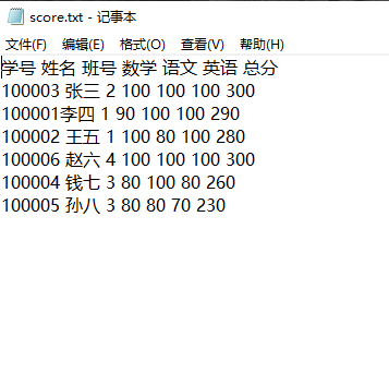 对score.txt内数据进行排序后结果截图;