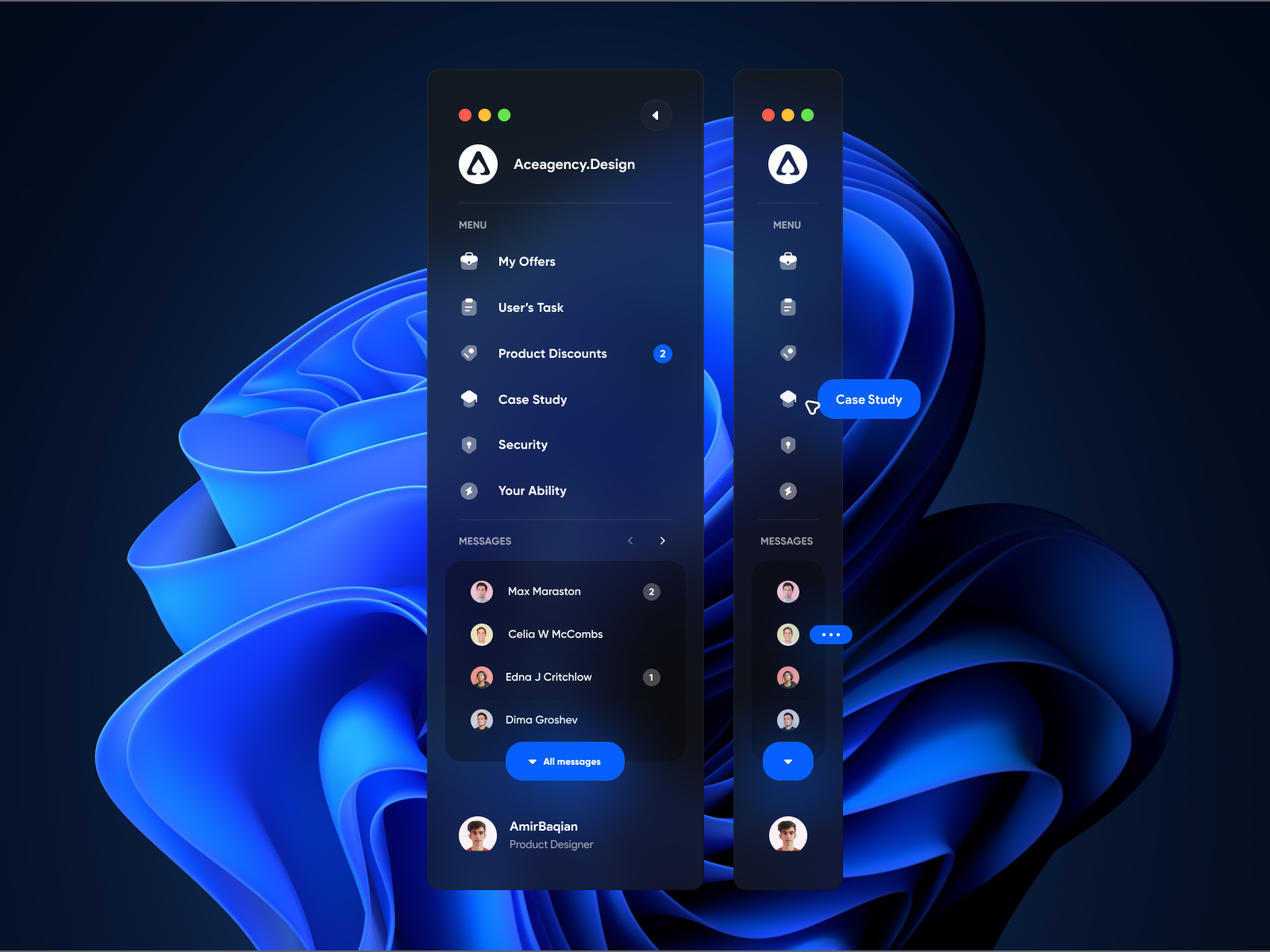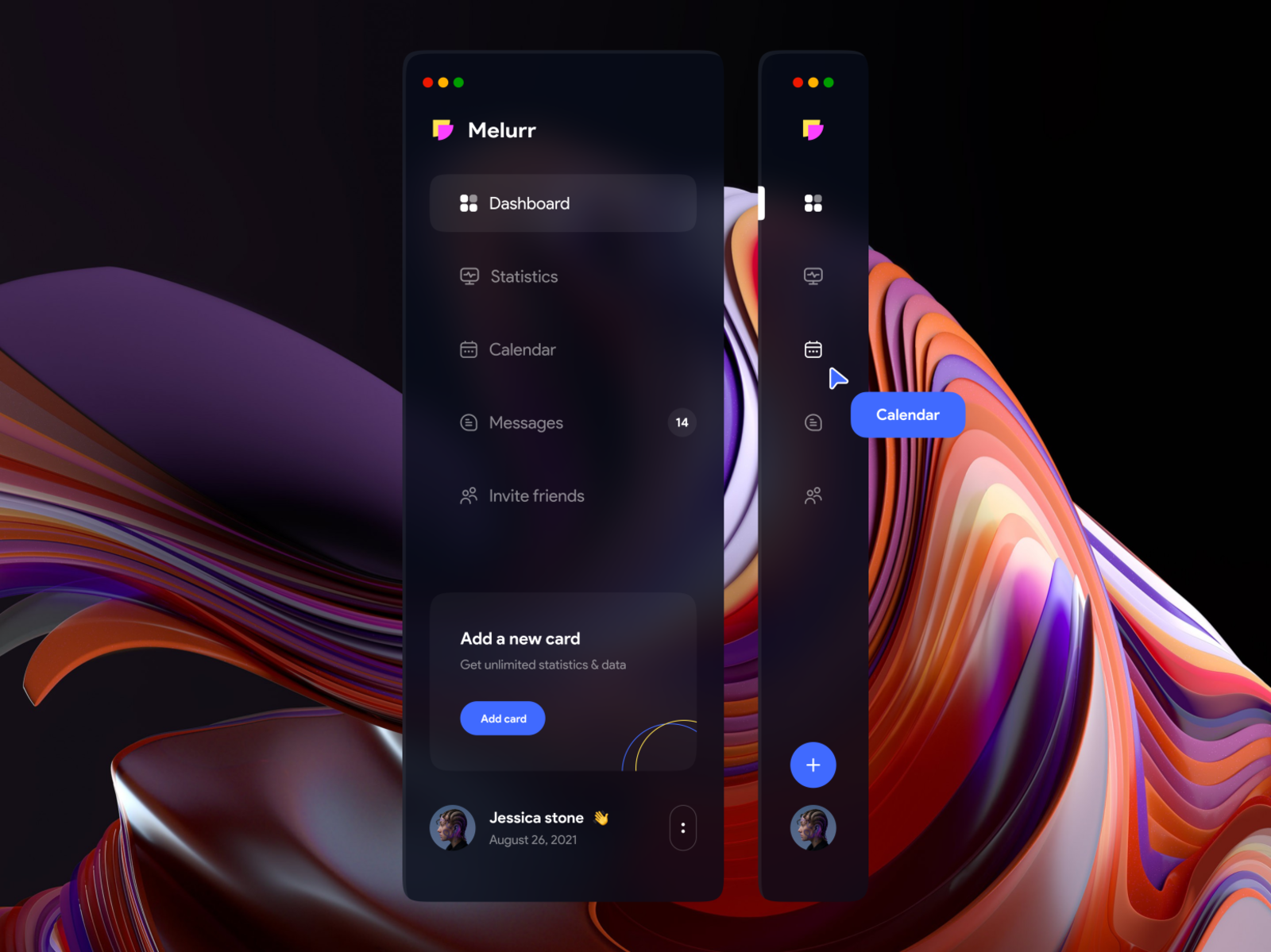 突破传统的平面导航模式,引入z轴空间概念,通过微妙的层级、阴影和动效创造深度感: