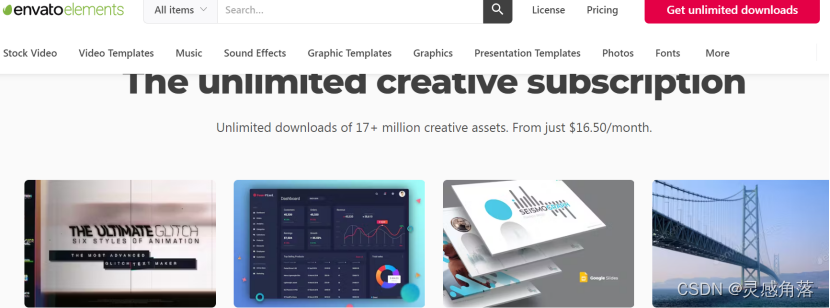 提供了一系列的创意素材,包括视频、音效、图形等。订阅后可以无限制下载,对于频繁需要素材的创作者来说非常合算。