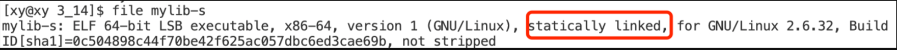ldd指令试着查看它是否有依赖的其他库文件:[llz@VM-12-2-ubuntu]$ ldd mylib-s not a dynamic executable说明静态链接生成的可执行程序不依赖其他库文件,同样地,用