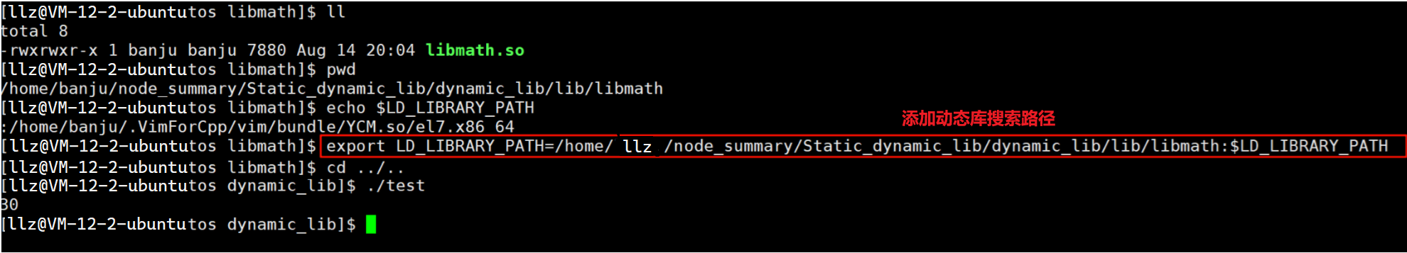 2️⃣修改环境变量LD_LIBRARY_PATH,该环境变量是专门用来存储用户自定义库路径的: