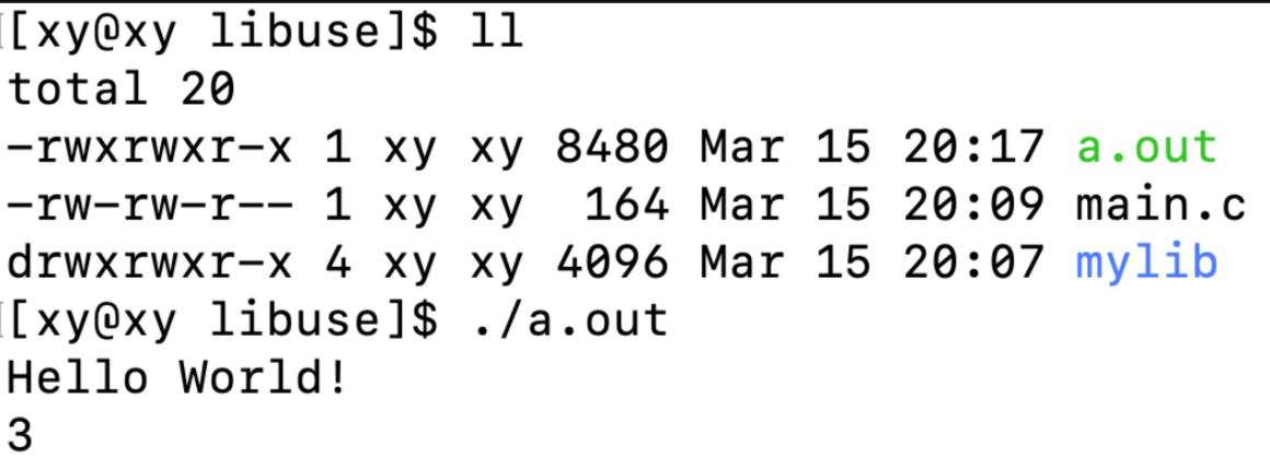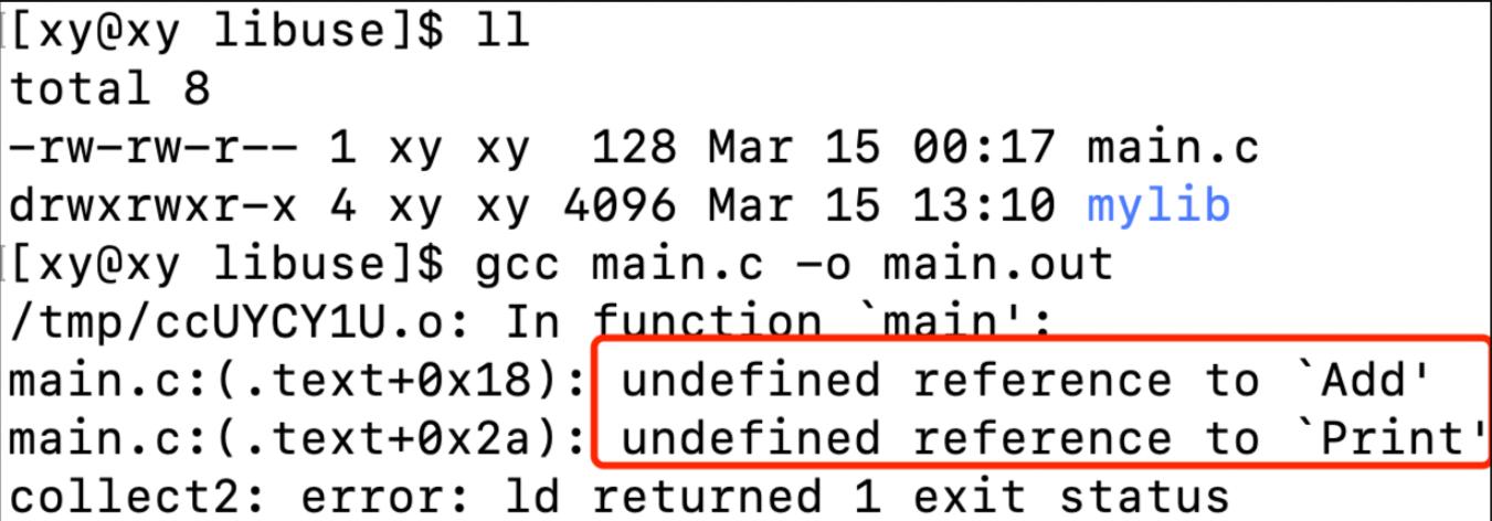 mylib。这个程序能够成功调用库函数printf,归功于gcc编译器在生成可执行程序时,将C标准库也链接进可执行程序中。通过指令
