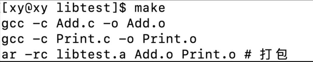 ar -rc libtest.a Add.o Print.o用