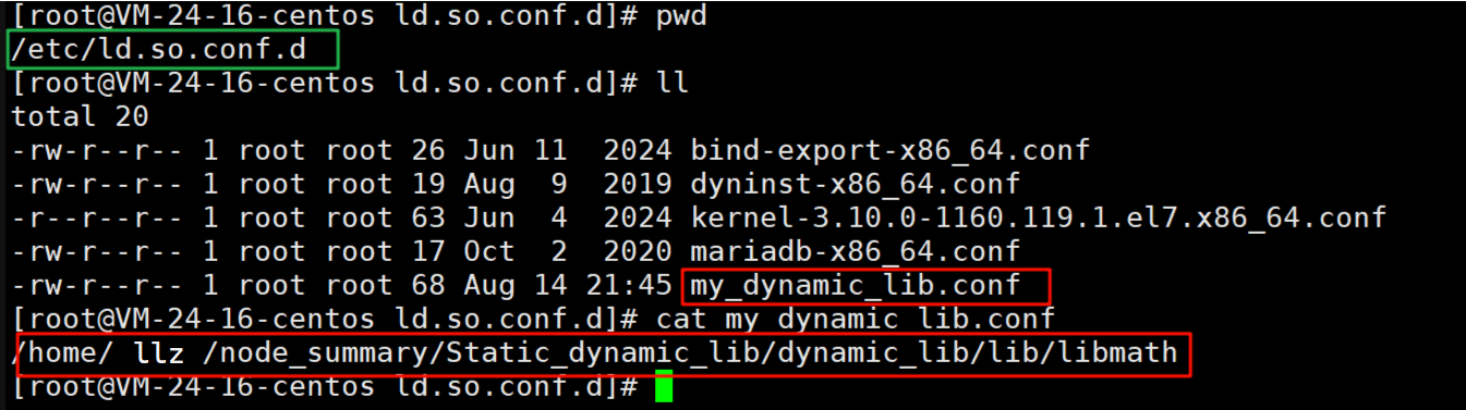 3️⃣在/etc/ld.so.conf.d目录中,创建一个自己的动态库路径配置文件以.conf结尾,创建好后使用ldconfig复用: