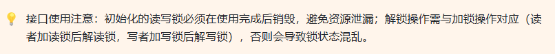 在实际开发中,无需手动实现复杂的锁协调逻辑,主流的线程库已封装好“读写锁”接口,直接调用即可实现读者写者模型的并发控制。以Linux系统的pthread线程库为例,核心接口如下: