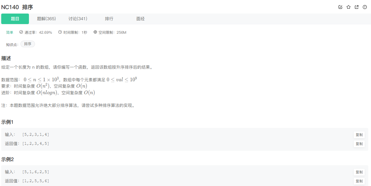 vector<int>&引用,可以是无序的整数数组。 - 输出:返回排序后的同一个