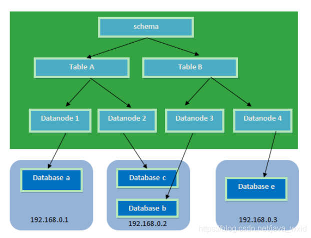 数据切分后,一个大表被分到不同的分片数据库上面,每个表分片所在的数据库就是分片节点(dataNode)。