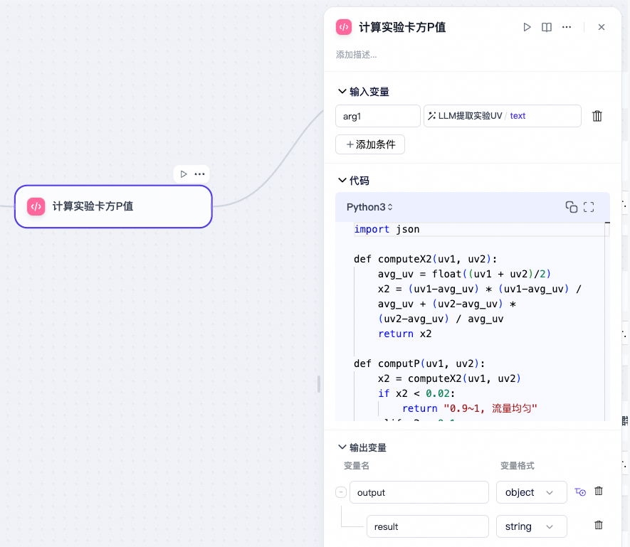 在数科 AB 实验项目中,在分析实验流量均衡性的时候,直接使用 python 函数来实现。