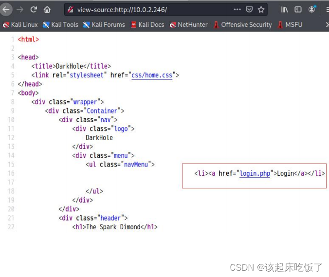 - 访问 80 端口,首页是一个静态页面,在源代码中发现 login.php