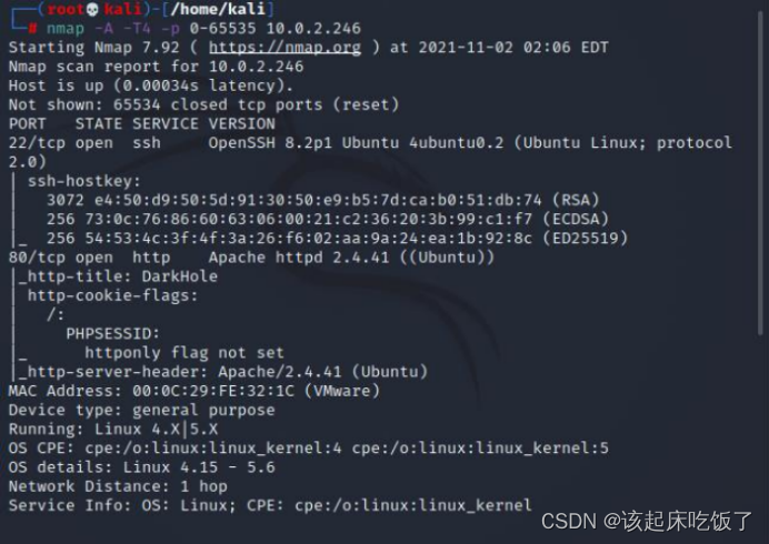 2. 扫描靶机端口,发现开放 22 和 80 端口